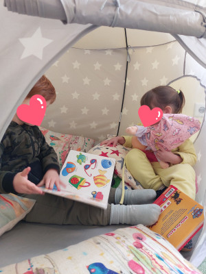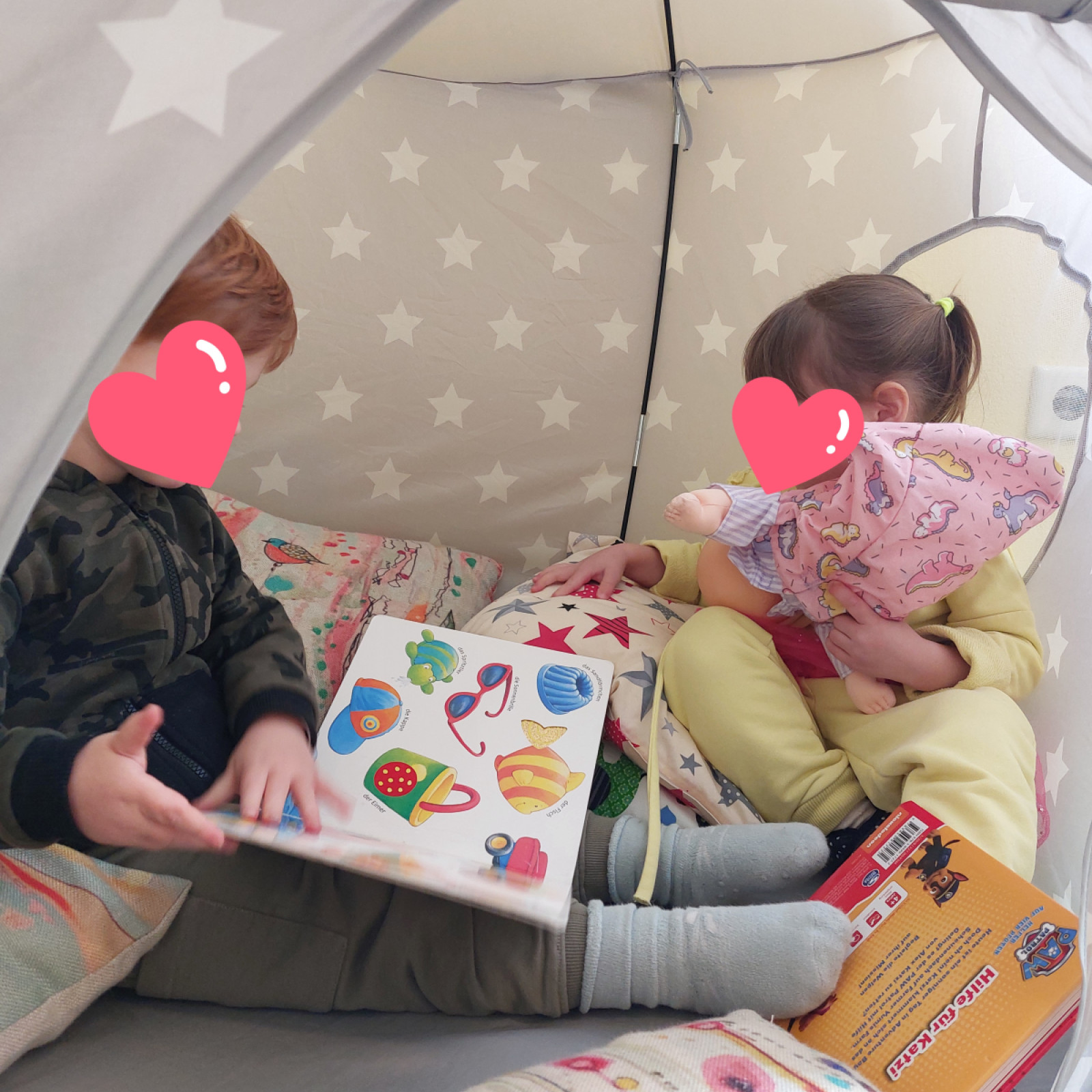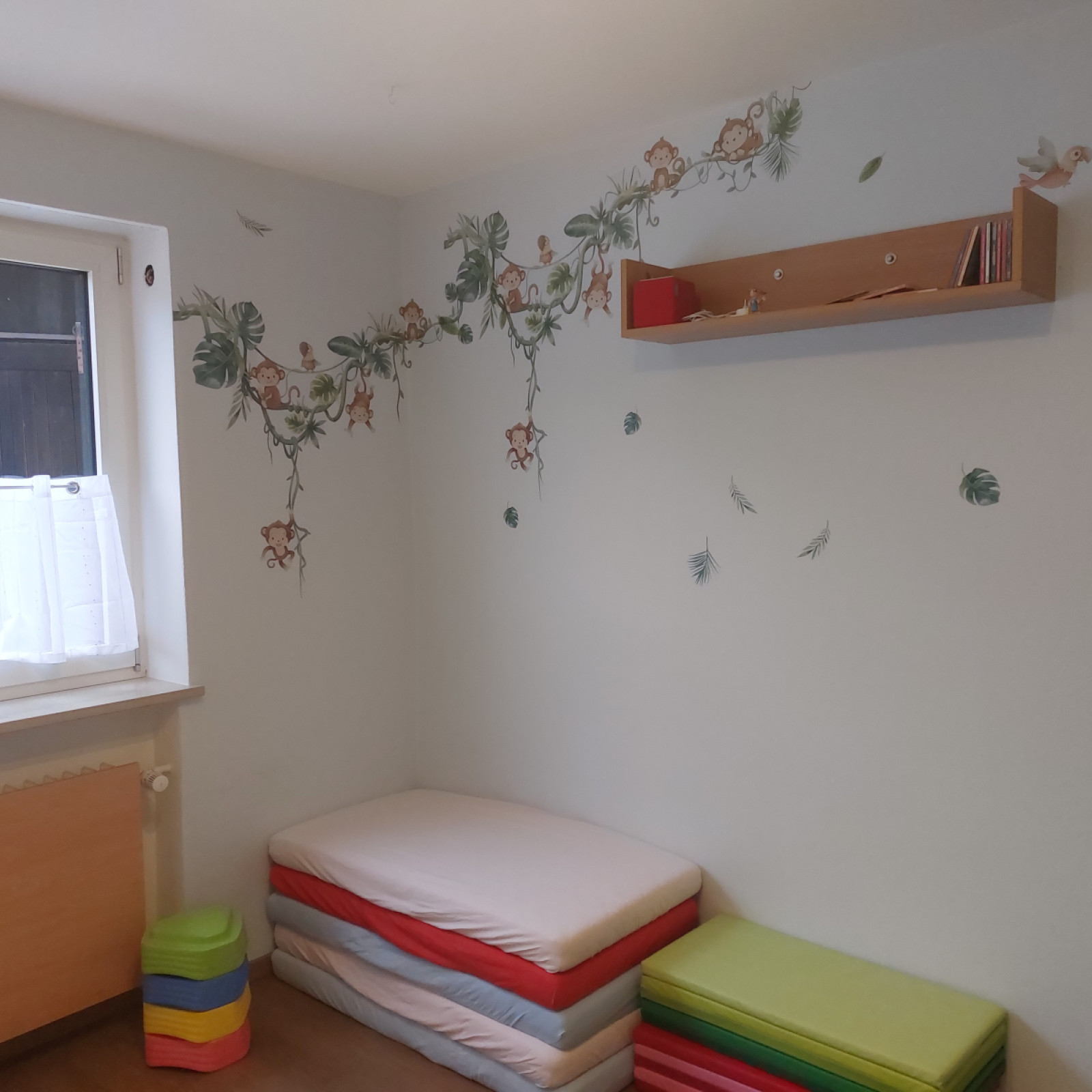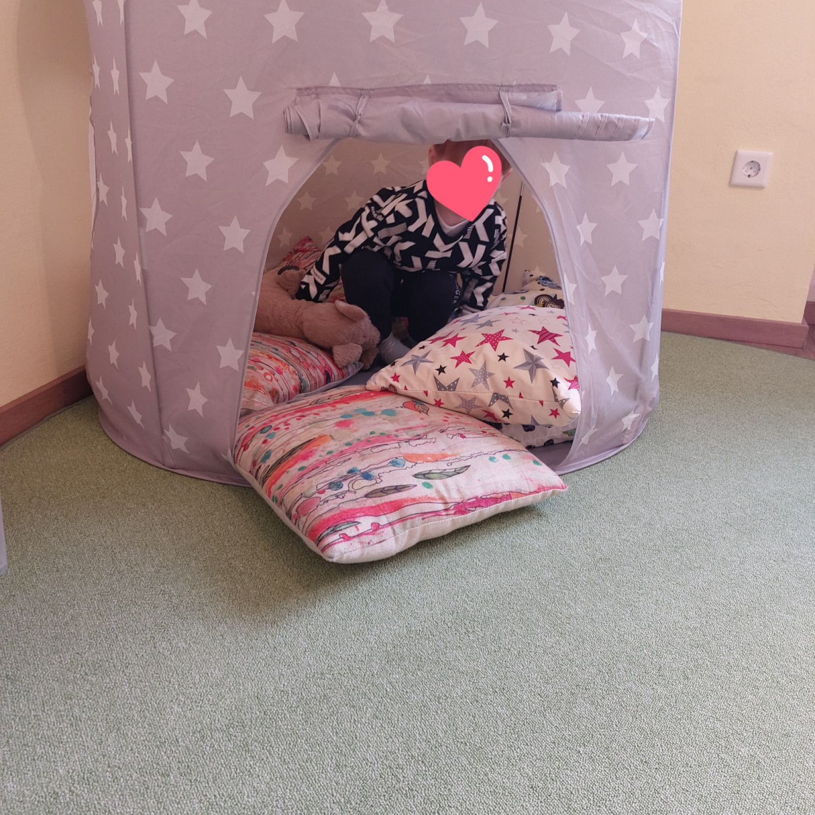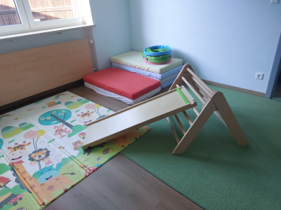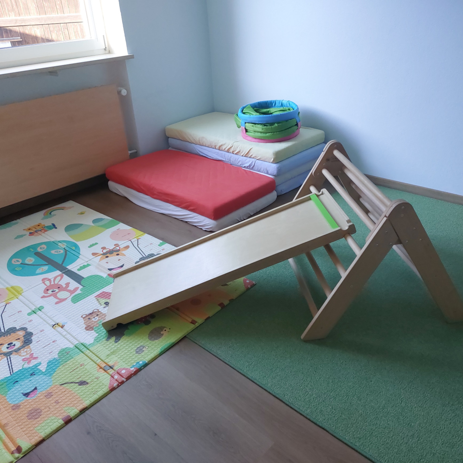 Im Eingangsbereich gibt es Platz für Wechselkleidung, Gartenkleidung und für persönliche Dinge. Der Flur ist groß, an ihn grenzen alle anderen Räume an. Unser Hauptraum lädt zum kuscheln, lesen und spielen ein. Im Toberaum kann geklettert und gerutscht werden, auch kann man dort hervorragend Höhlen bauen.