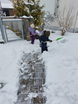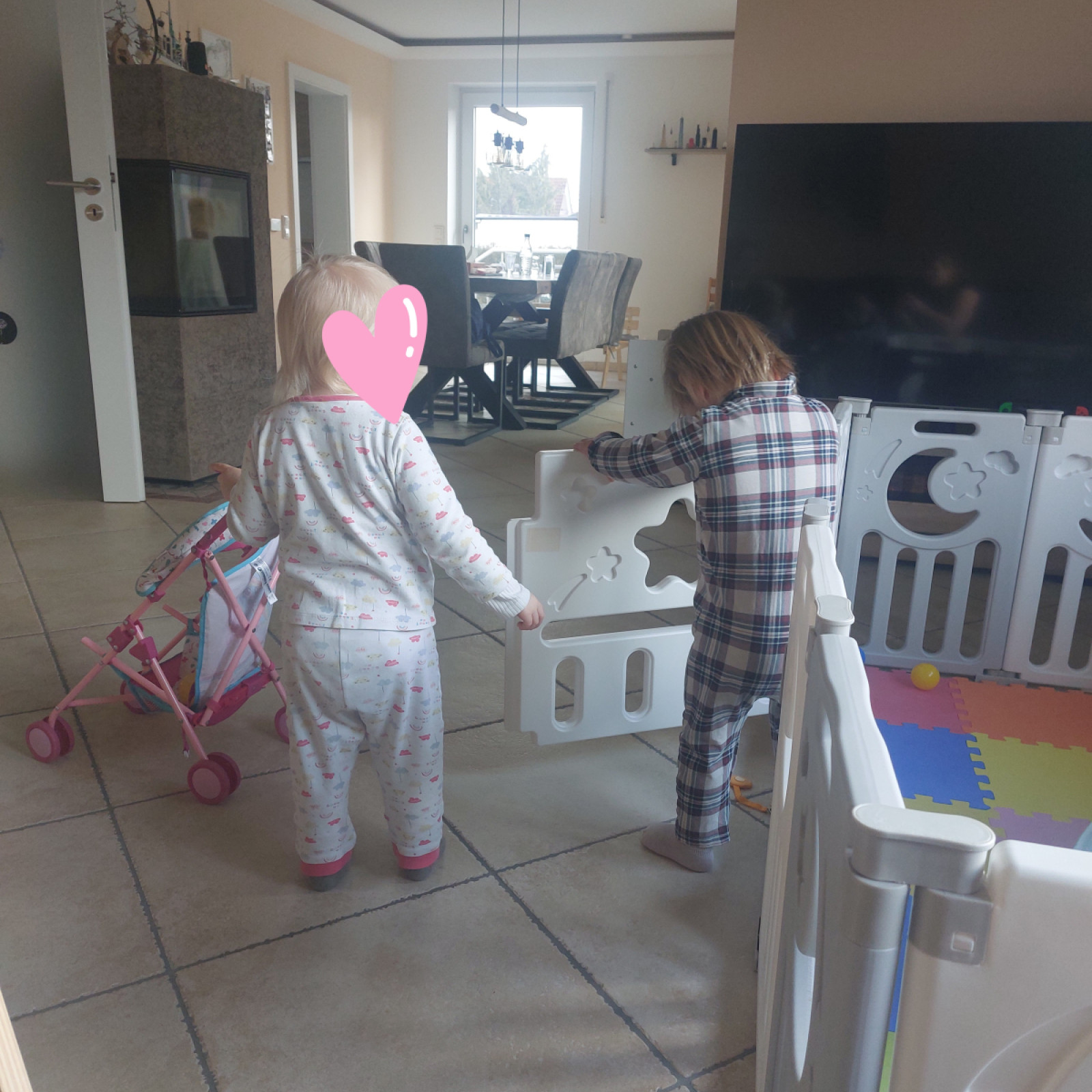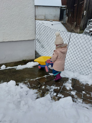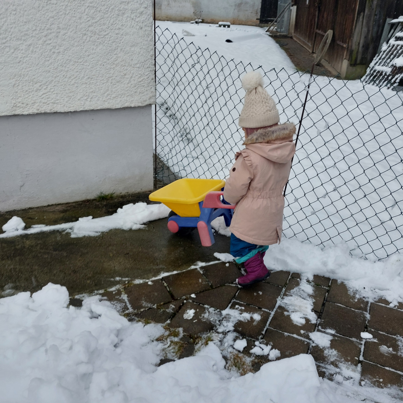 Im Januar 2026 lagen auch noch ein paar Weihnachtsgeschenke da und der Baum war wieder weg. Dann gab es viel Schnee. Das Bällebad und Zelt wurden geprüft und für sehr gut empfunden. Wir feierten Geburtstag und bastelten für den Fasching.